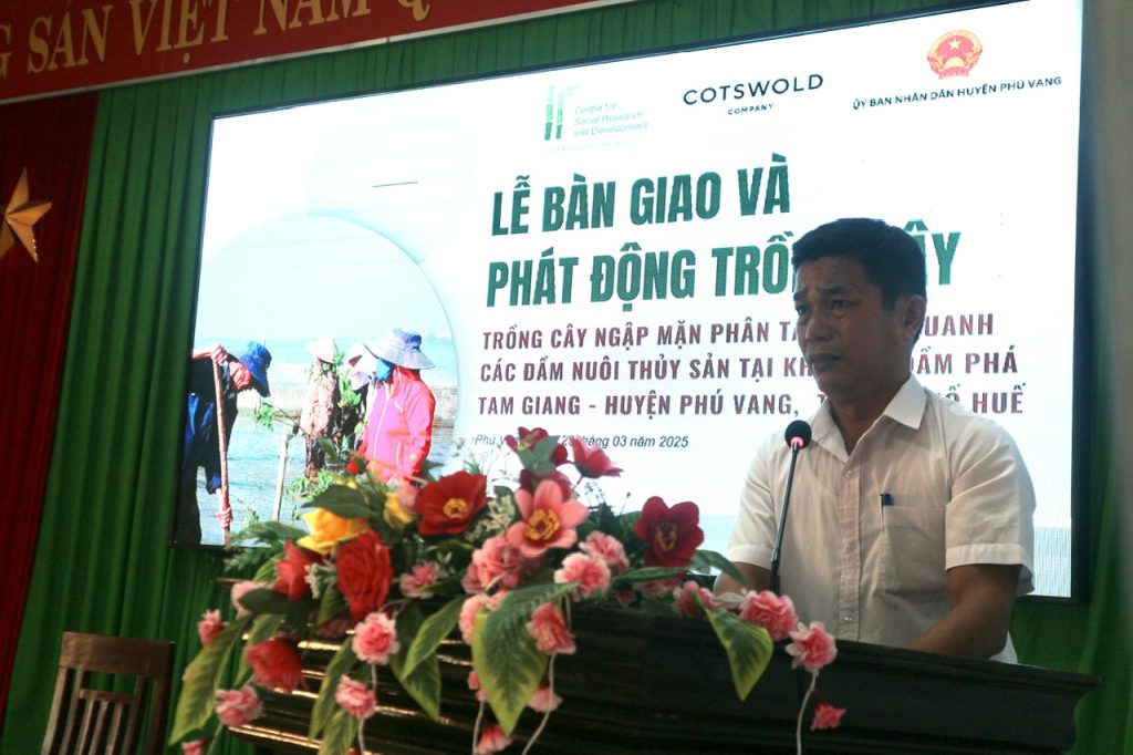 Hoạt động nằm trong khuôn khổ dự án “Trồng cây ngập mặn phân tán xung quanh các đầm nuôi thủy sản tại khu vực đầm phá Tam Giang và trồng cây rừng bản địa nhằm phục hồi rừng tự nhiên tại huyện A Lưới, tỉnh Thừa Thiên Huế” được Ủy ban Nhân dân Thành phố Huế phê duyệt theo quyết định số 168/QĐ-UBND ngày 20/01/2025. Tổng vốn dự án là 735.550.000 đồng (tương đương 29.875 USD) do Công ty Cotswold Company (UK) Ltd (Vương Quốc Anh) tài trợ, thời gian thực hiện đến tháng 09/2025 bao gồm các hoạt động khảo sát, trồng rừng phân tán và giám sát sau trồng. Ngoài việc bàn giao cây giống, CSRD cũng đã hỗ trợ 31,300,000đ làm kinh phí cho địa phương và cộng đồng trong việc tiến hành các hoạt động trồng rừng.