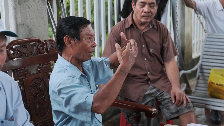 Mr. Le Van Trong – leader of the livelihood group shared about the formation process and activities of the group for the visiting group.
