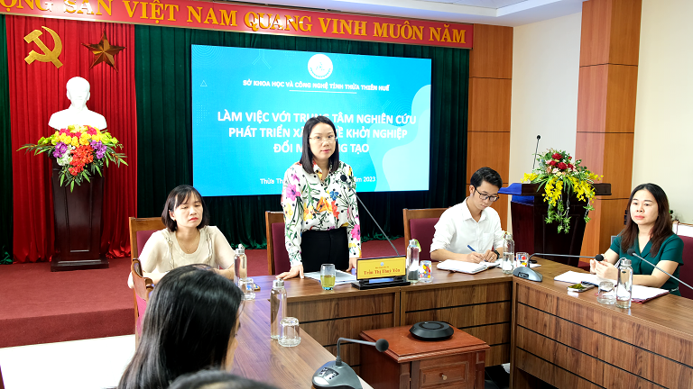 Ms. Tran Thi Thuy Yen – Deputy Director of the Provincial Department of Science and Technology at the working session with the A Luoi community.