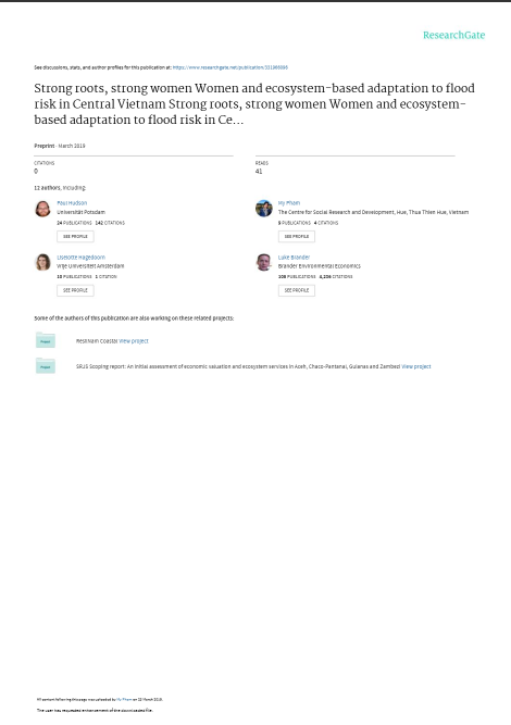 Strong roots Strong women: Women and ecosystem – based adaptation to flood risk in Central VietNam