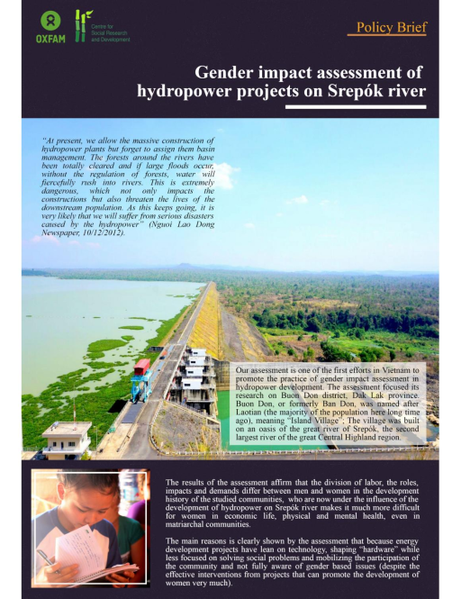 Policy brief: Gender impact assessment of hydropower project on Srepok river – 2017